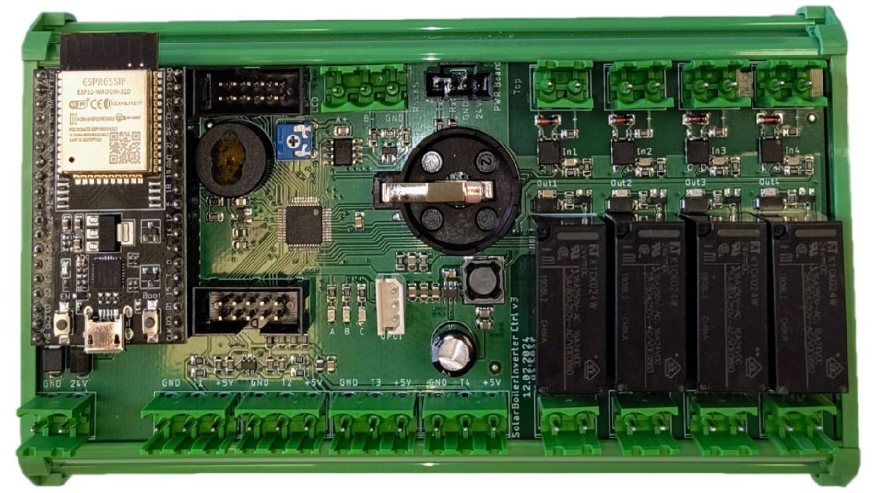 - přepínání topného tělesa na síť, v případě nízkého výkonu slunce a velkého požadavku na teplou vodu